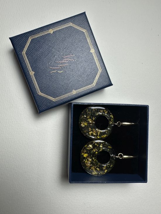 Kolczyki z suszonymi liśćmi i żółtymi kwiatami zaprojektowane wg. zamysłu Magdaleny Wolińskiej -Riedi to indywidualna interpretacja wiosny. Wiosna to nie tylko świeże pąki, to także słońce przebijające się przez stare mury.  Żółte kwiaty to młoda energia, a suszone liście to „stary” Rzym (Forum Romanum). Razem tworzą obraz odrodzenia na fundamentach tradycji.